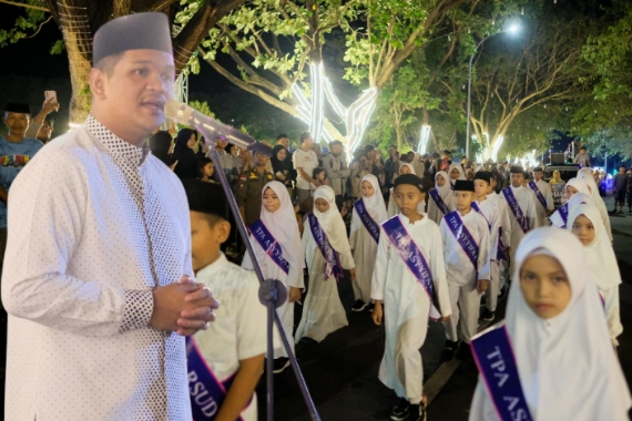 SUARAIMBANG.COM, BANTAENG – Bupati Bantaeng, Muh. Fathul Fauzy Nurdin membuka sekaligus melepas peserta Lomba Takbiran dan Miniatur Masjid dalam rangka menyambut Hari Raya Idul Fitri 1 Syawal 1447 H / 2026 M. Kegiatan tersebut dilaksanakan di kawasan Pantai Seruni, Jumat (20/03/2026) malam.