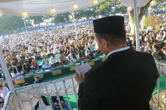 Dalam sambutannya, Bupati Bantaeng mengucapkan selamat Hari Raya Idul Fitri 1447 Hijriyah dan mengajak kepada seluruh masyarakat Bantaeng untuk saling memaafkan.